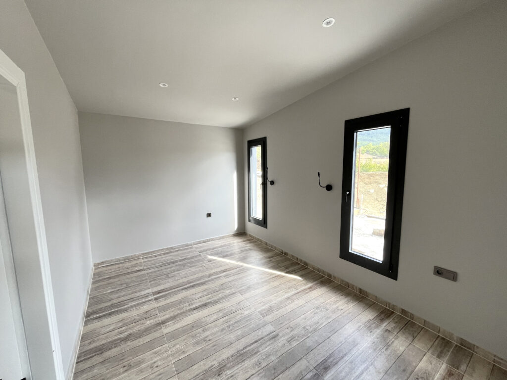 Dış cephede, boardex üzerine ahşap desenli fibercement kaplama kullanıldı; bu sayede doğal alanla uyumlu bir görünüm ve yüksek dayanıklılık elde edildi. İç mekânda ise çift kat alçı uygulaması, düzgün ve estetik yüzeyler sunuyor.